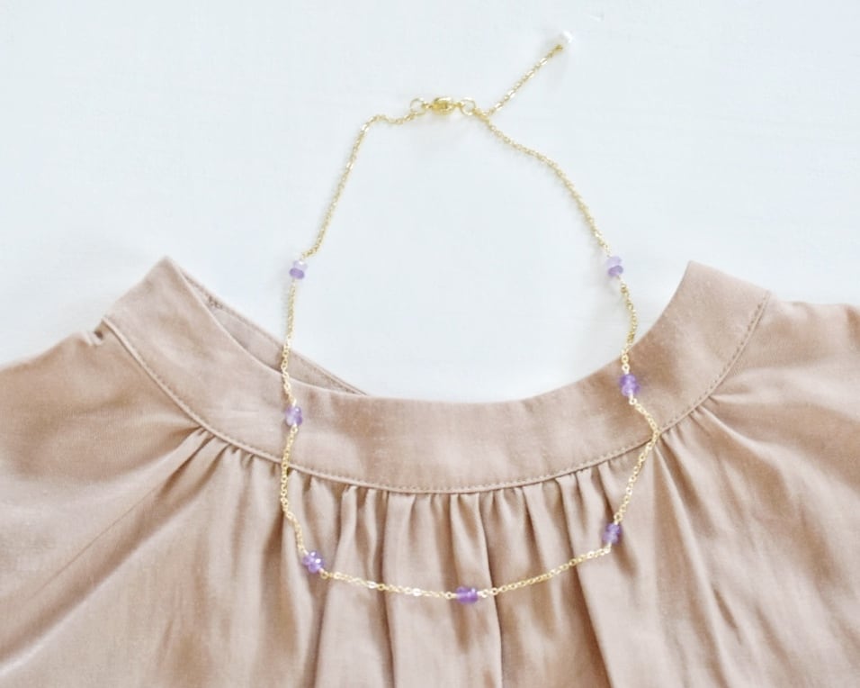 優しい紫 アメジストのステーションネックレス