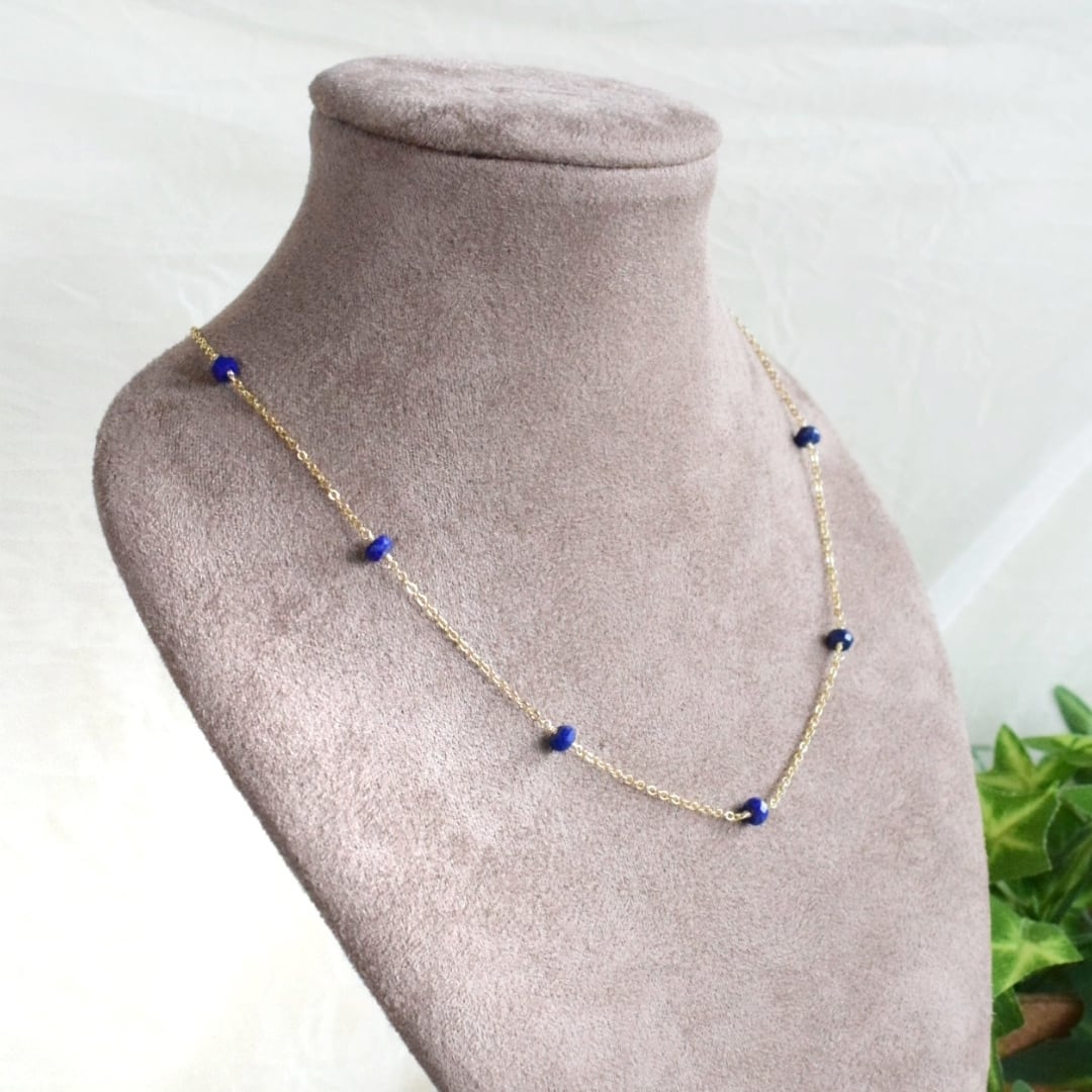 天然石ステーションネックレス ラピスラズリ 重ね付けにも 長さ変更可能