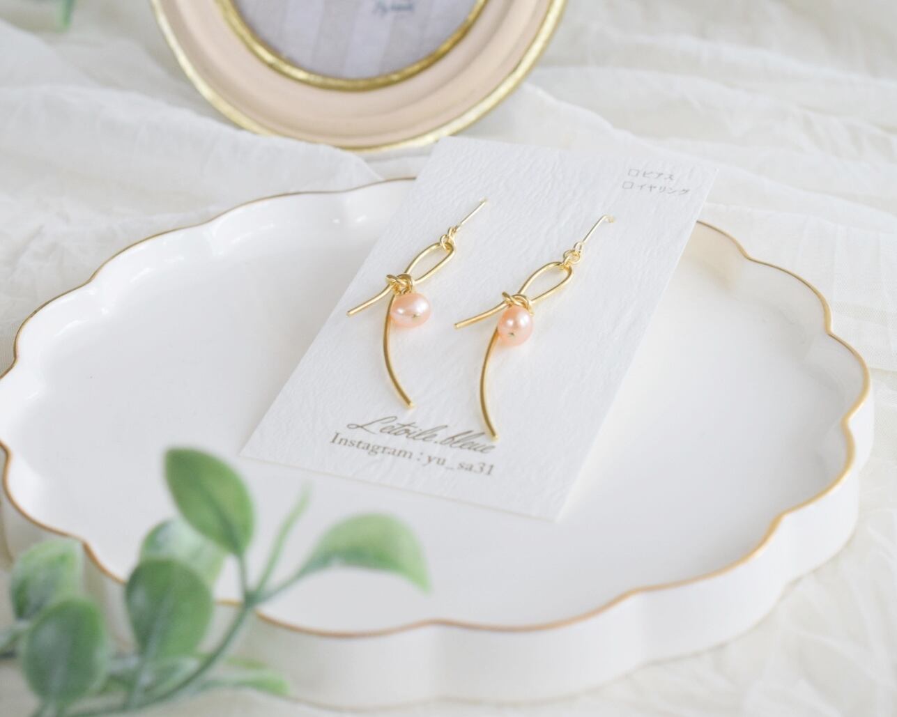 淡水パールが耳元で揺れ、